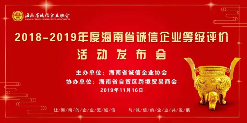 “2018-2019年度海南省誠信企業等級評價”活動發布會昨天(16號)在海口正式啟動。這一活動旨在進一步推動我省社會誠信體系建設,為海南自貿區(港)建設營造良好的營商環境,此項工作得到省政府信用主管部門的支持。