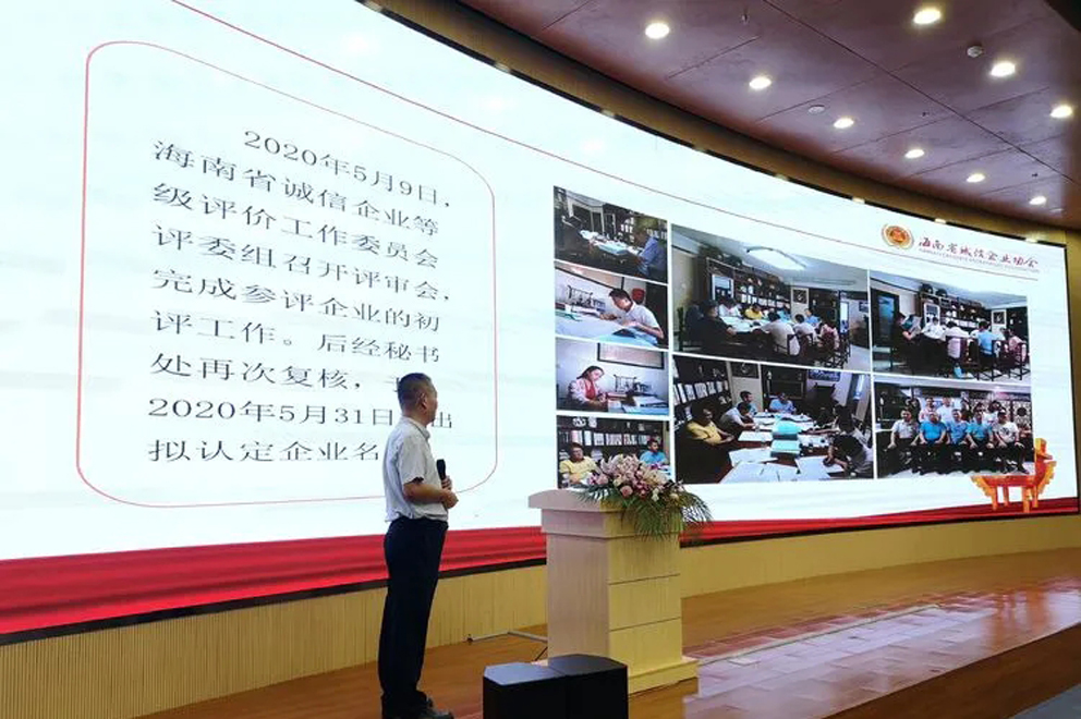 海南省誠信企業(yè)協(xié)會評價(jià)工作委員會蔡澤進(jìn)主任對評價(jià)活動過程進(jìn)行了介紹。