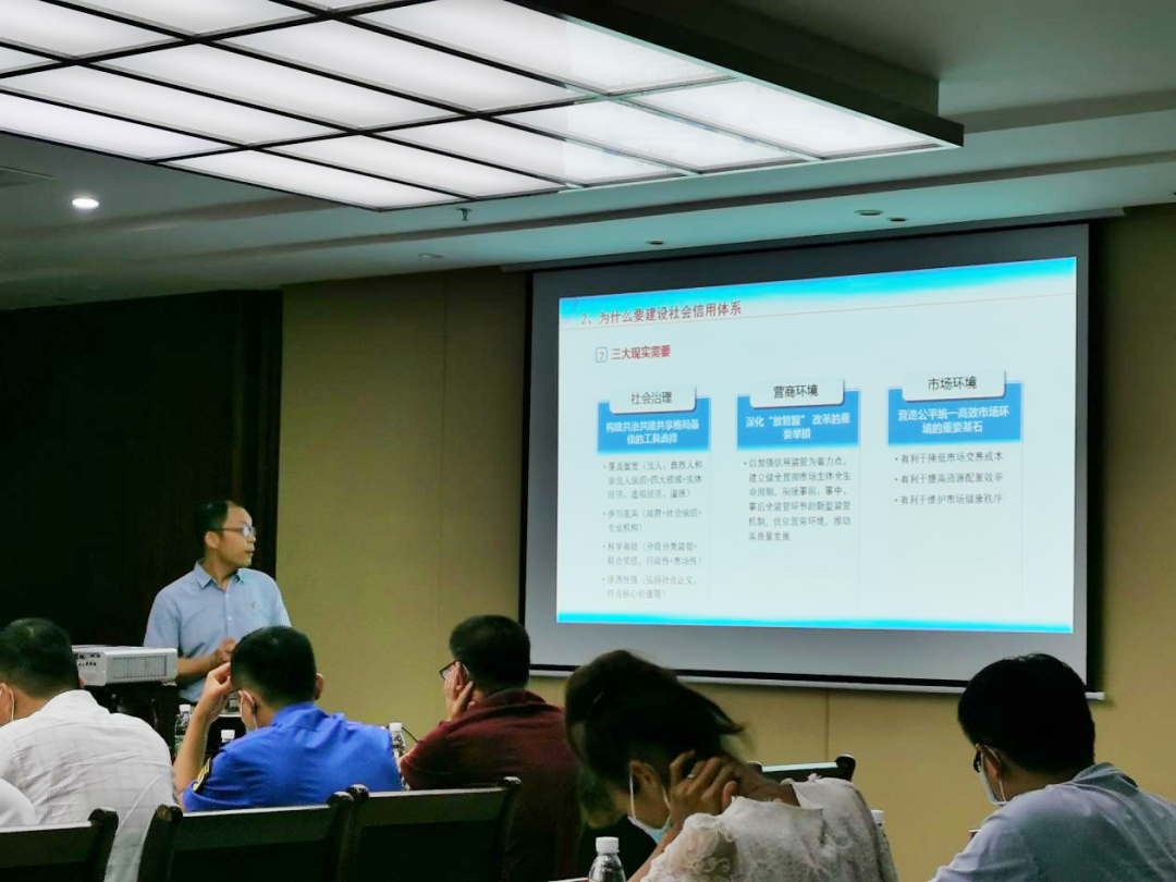 社會信用體系是社會主義市場經濟體制和社會治理體制的重要組成部分,是供需有效銜接的重要保障,是資源優化配置的堅實基礎,是營造法治化、國際化、便利化營商環境的重要抓手。省委、省政府高度重視和支持推進社會信用體系建設,將其作為封關運作的軟件基礎設施和防范化解風險的重要手段,高位推動實施。進一步提升陵水社會信用建設領導小組各成員單位干部隊伍的信用建設管理水平,2022年6月29日,由陵水黎族自治縣社會信用體系建設聯席會議辦公室主辦,海南省誠信企業協會承辦的陵水黎族自治縣2022年社會信用體系建設培訓會成功舉辦,陵水黎族縣信用建設領導小組近46個政府單位都派員參加了培訓學習。省誠信企業協會孫秀山會長親自率領誠協工作人員為本次培訓會提供全程服務。