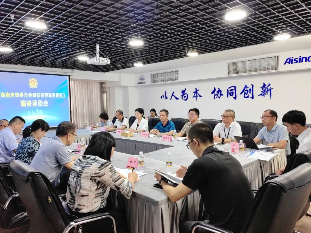 8月14日下午,民盟海南省委與海南省誠信企業(yè)協(xié)會在誠協(xié)副會長單位—海南航天信息有限公司會議室召開了海南自貿(mào)港企業(yè)誠信管理體系建設調(diào)研座談會。由省人大常委會委員、民盟省委專職副主委陳冬霞帶隊的課題組,成員包括省政協(xié)委員、民盟省委秘書長吳方剛,省政協(xié)委員、民盟省委經(jīng)濟專委會副主任王旭光以及民盟省直屬第二支部部分盟員。海南省誠信企業(yè)協(xié)會會長孫秀山、監(jiān)事長談德榮、常務副會長王康華、王關美、副會長于濱、秘書長傅姝暢、信用專家蔡群璋等參加了調(diào)研座談,大家共同為海南自貿(mào)港企業(yè)誠信管理體系建設出謀劃策;