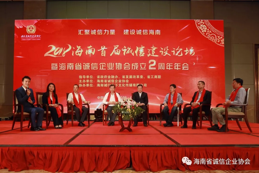 “匯聚誠信力量 共建誠信海南”,3月15日,2018海南首屆誠信建設論壇暨海南省誠信企業協會成立兩周年年會活動在海口喜來登酒店隆重開幕。省金融辦、省發改委,省工商聯等省相關部門領導出席并講話。