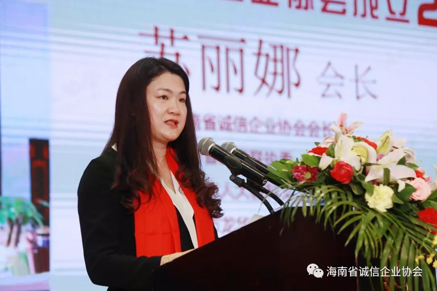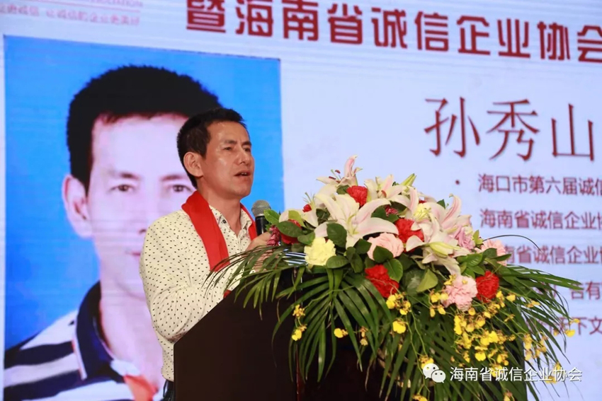 活動中,海南省誠信企業協會蘇麗娜會長等協會領導對獲得2016--2017年度星級誠信企業進行了頒獎、受牌。海南南國食品有限公司、金棕櫚園藝景觀有限公司、海南中明工程有限公司、海南早安廣告有限公司、海南21城傳廣告媒有限公司等共15家單位獲得五星級誠信企業認定,另外還有10家單位和3家單位分別獲得四星級和三星級誠信企業認定。海誠協秘書長孫秀山、會長蘇麗娜分別就協會去年工作、今年規劃做報告。著名書畫家許俊鵬先生還向活動贊助單位贈送了作品 ,以表達對誠信建設的感慨和支持。